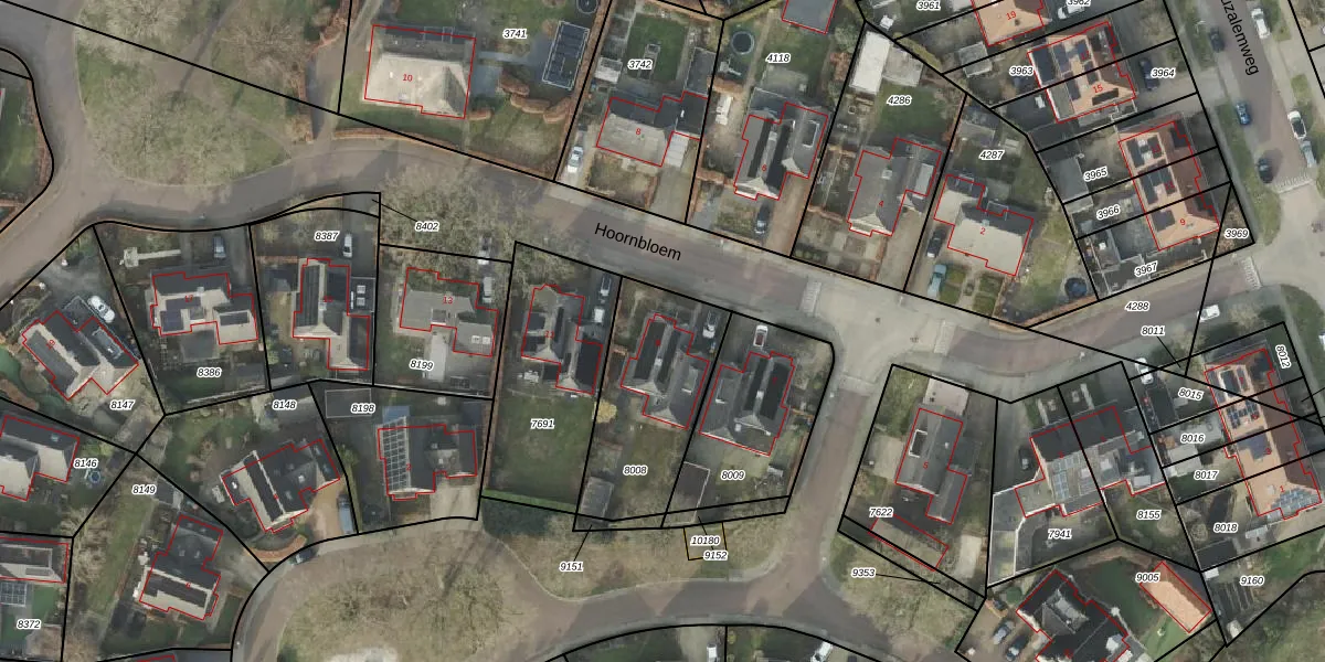 Het perceel waarop Hoornbloem 9 staat heeft een oppervlakte van 528 m². Dit is een groot perceel. De perceeloppervlakte wordt geregistreerd door het Kadaster. Gedetailleerde informatie over de maten van dit perceel kunt u vinden in het rapport Kadastrale kaart met maatvoering van Hoornbloem 9.
