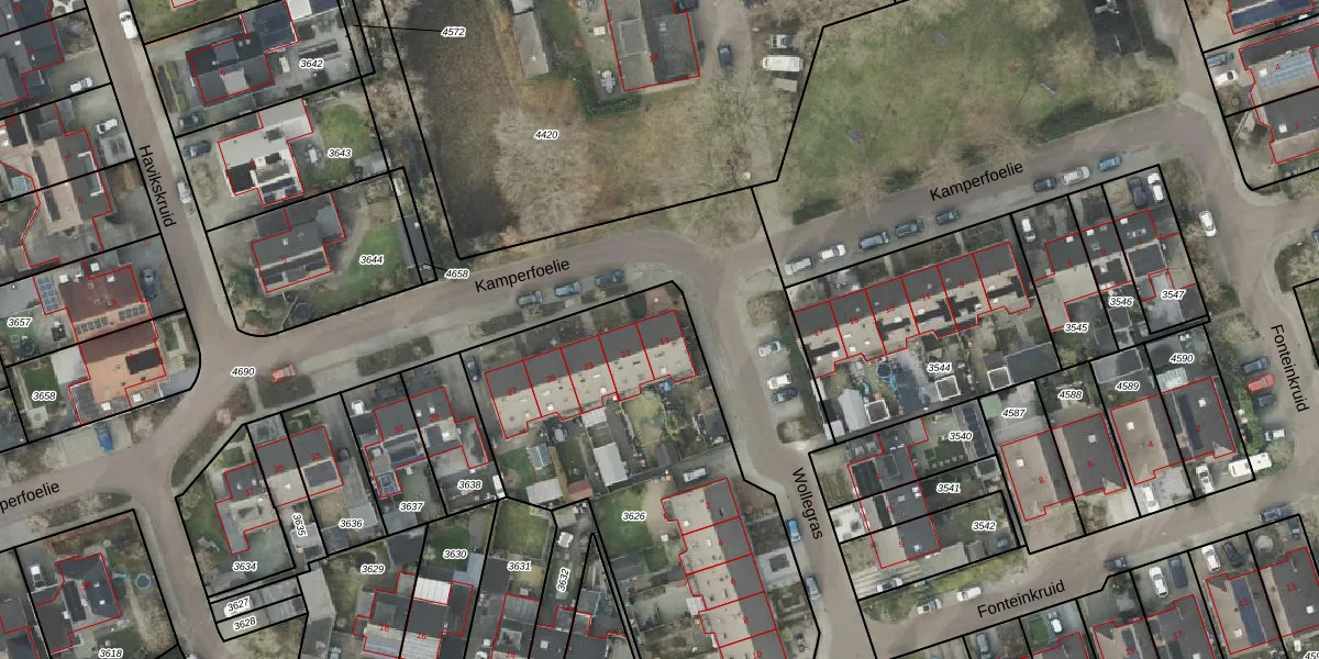 Kamperfoelie 19 is gelegen op kadastraal perceel HLD01B3626. Deze kadastrale aanduiding is uniek en wordt gebruikt door het Kadaster om eigendomsrechten en andere zakelijke rechten vast te leggen. Het perceel maakt onderdeel uit van de kadastrale gemeente Hellendoorn.