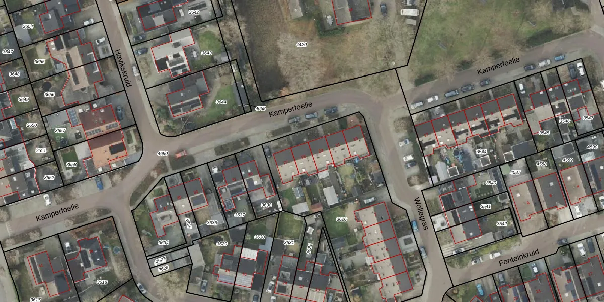 Kamperfoelie 25 is gelegen op kadastraal perceel HLD01B3626. Deze kadastrale aanduiding is uniek en wordt gebruikt door het Kadaster om eigendomsrechten en andere zakelijke rechten vast te leggen. Het perceel maakt onderdeel uit van de kadastrale gemeente Hellendoorn.