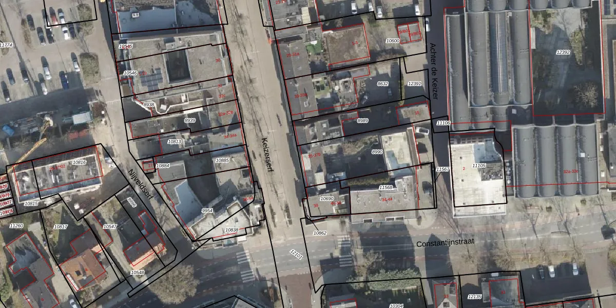 Het perceel waarop Keizerserf 37 staat heeft een oppervlakte van 608 m². Dit is een groot perceel. De perceeloppervlakte wordt geregistreerd door het Kadaster. Gedetailleerde informatie over de maten van dit perceel kunt u vinden in het rapport Kadastrale kaart met maatvoering van Keizerserf 37.