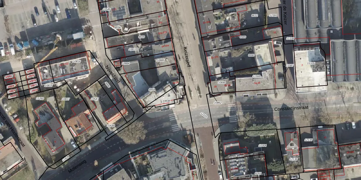 Het perceel waarop Keizerserf 38 staat heeft een oppervlakte van 149 m². Dit is een middelgroot perceel. De perceeloppervlakte wordt geregistreerd door het Kadaster. Gedetailleerde informatie over de maten van dit perceel kunt u vinden in het rapport Kadastrale kaart met maatvoering van Keizerserf 38.