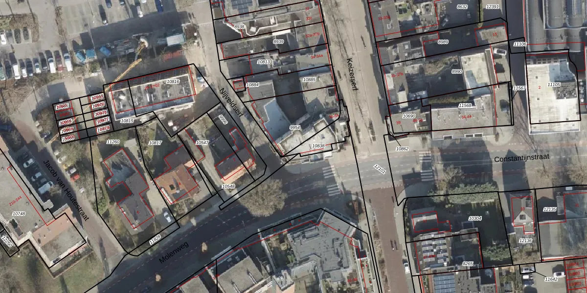 Het perceel waarop Keizerserf 48 staat heeft een oppervlakte van 449 m². Dit is een groot perceel. De perceeloppervlakte wordt geregistreerd door het Kadaster. Gedetailleerde informatie over de maten van dit perceel kunt u vinden in het rapport Kadastrale kaart met maatvoering van Keizerserf 48.