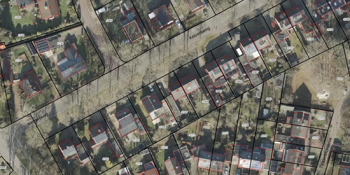 Het perceel waarop Keizersweg 33 staat heeft een oppervlakte van 374 m². Dit is een groot perceel. De perceeloppervlakte wordt geregistreerd door het Kadaster. Gedetailleerde informatie over de maten van dit perceel kunt u vinden in het rapport Kadastrale kaart met maatvoering van Keizersweg 33.