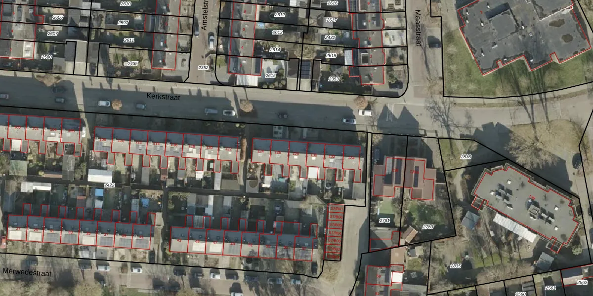 Het perceel waarop Kerkstraat 128 staat heeft een oppervlakte van 9330 m². Dit is een zeer groot perceel. De perceeloppervlakte wordt geregistreerd door het Kadaster. Gedetailleerde informatie over de maten van dit perceel kunt u vinden in het rapport Kadastrale kaart met maatvoering van Kerkstraat 128.