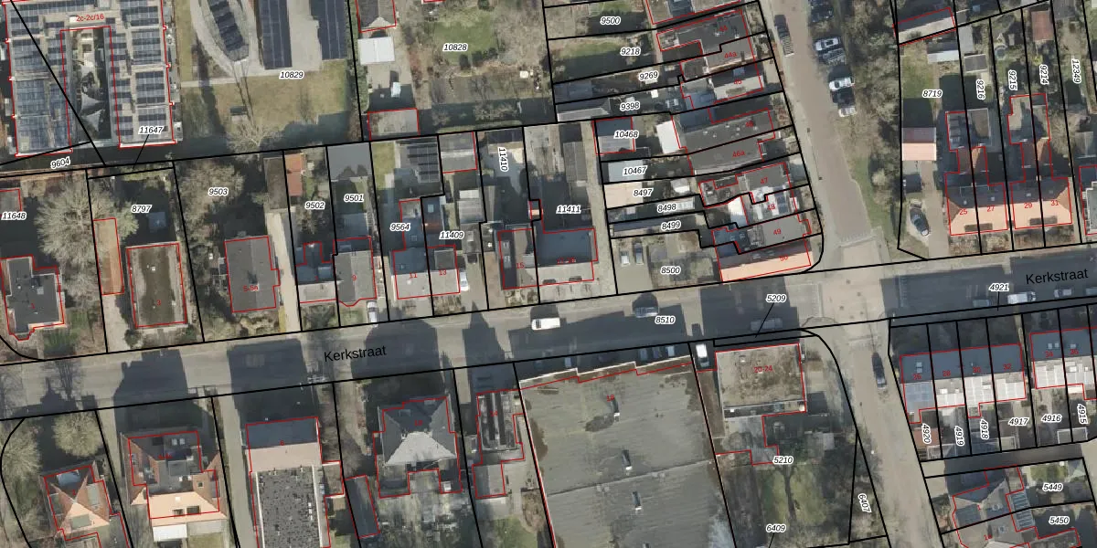 Het perceel waarop Kerkstraat 17 staat heeft een oppervlakte van 435 m². Dit is een groot perceel. De perceeloppervlakte wordt geregistreerd door het Kadaster. Gedetailleerde informatie over de maten van dit perceel kunt u vinden in het rapport Kadastrale kaart met maatvoering van Kerkstraat 17.