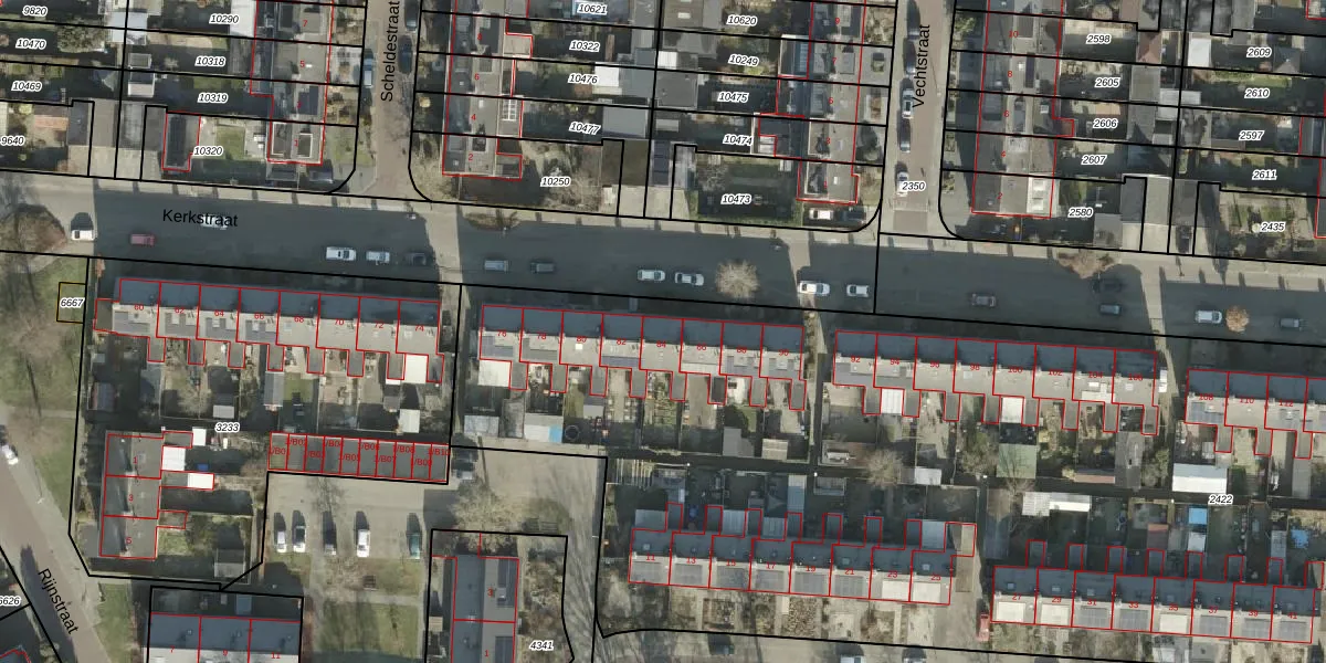 Het perceel waarop Kerkstraat 84 staat heeft een oppervlakte van 9330 m². Dit is een zeer groot perceel. De perceeloppervlakte wordt geregistreerd door het Kadaster. Gedetailleerde informatie over de maten van dit perceel kunt u vinden in het rapport Kadastrale kaart met maatvoering van Kerkstraat 84.