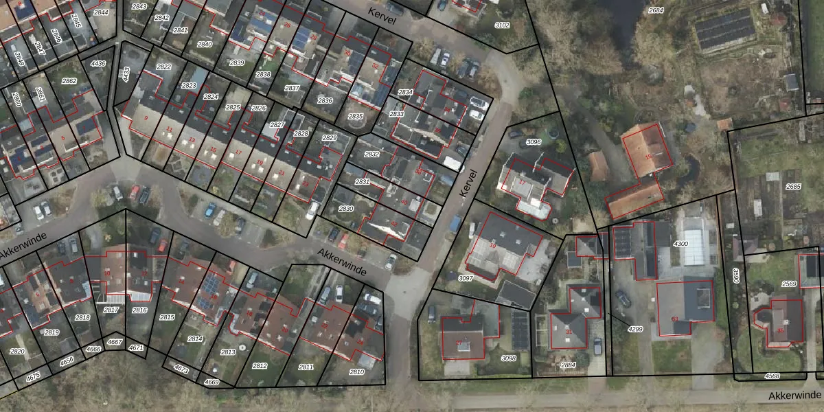 Het perceel waarop Kervel 40 staat heeft een oppervlakte van 151 m². Dit is een middelgroot perceel. De perceeloppervlakte wordt geregistreerd door het Kadaster. Gedetailleerde informatie over de maten van dit perceel kunt u vinden in het rapport Kadastrale kaart met maatvoering van Kervel 40.