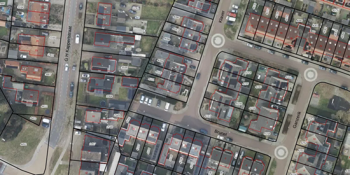 Het perceel waarop Klaver 1 staat heeft een oppervlakte van 265 m². Dit is een middelgroot perceel. De perceeloppervlakte wordt geregistreerd door het Kadaster. Gedetailleerde informatie over de maten van dit perceel kunt u vinden in het rapport Kadastrale kaart met maatvoering van Klaver 1.