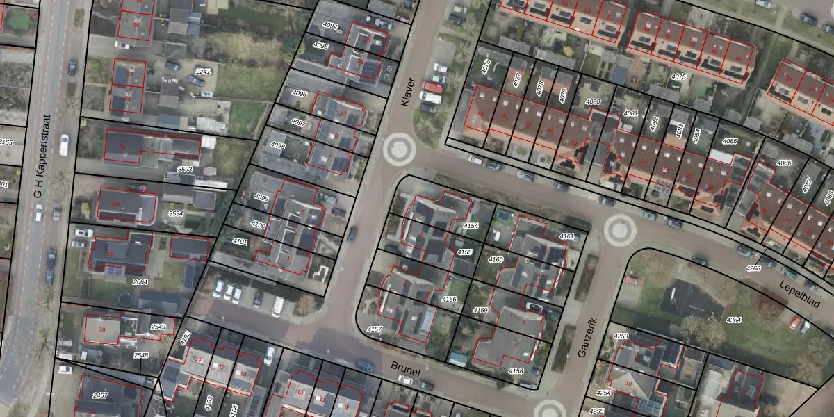 Het perceel waarop Klaver 8 staat heeft een oppervlakte van 241 m². Dit is een middelgroot perceel. De perceeloppervlakte wordt geregistreerd door het Kadaster. Gedetailleerde informatie over de maten van dit perceel kunt u vinden in het rapport Kadastrale kaart met maatvoering van Klaver 8.