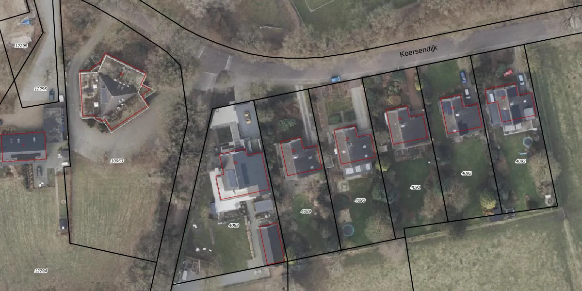 Het perceel waarop Koersendijk 20 staat heeft een oppervlakte van 1073 m². Dit is een zeer groot perceel. De perceeloppervlakte wordt geregistreerd door het Kadaster. Gedetailleerde informatie over de maten van dit perceel kunt u vinden in het rapport Kadastrale kaart met maatvoering van Koersendijk 20.