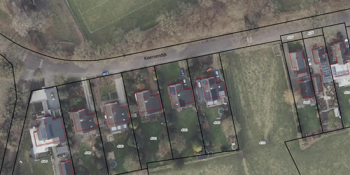 Het perceel waarop Koersendijk 26 staat heeft een oppervlakte van 1040 m². Dit is een zeer groot perceel. De perceeloppervlakte wordt geregistreerd door het Kadaster. Gedetailleerde informatie over de maten van dit perceel kunt u vinden in het rapport Kadastrale kaart met maatvoering van Koersendijk 26.