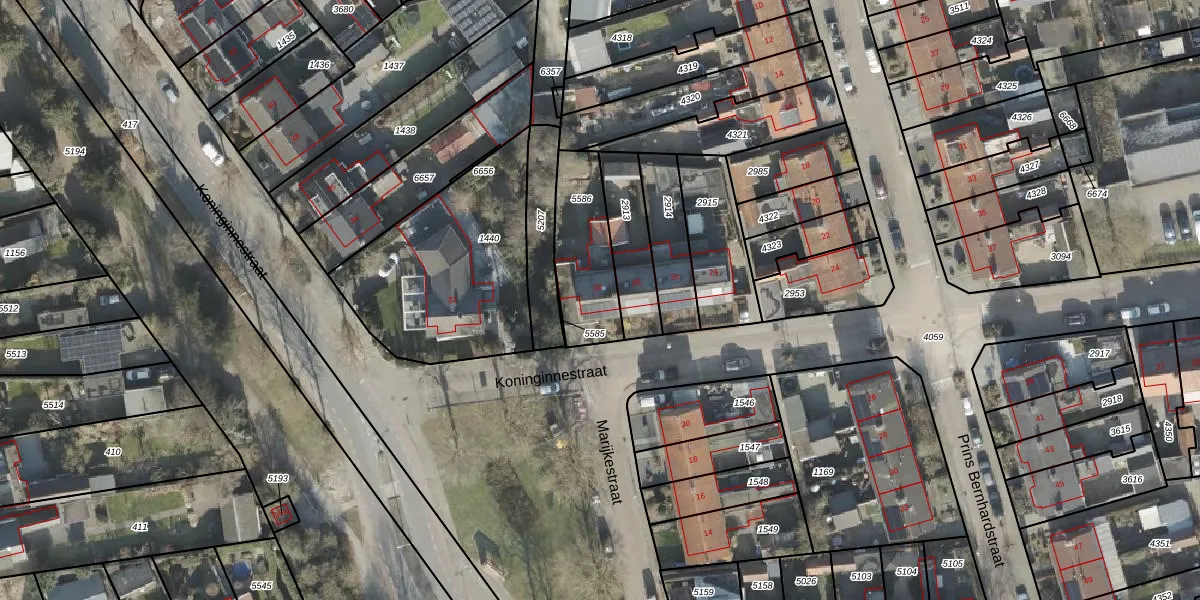 Het perceel waarop Koninginnestraat 30 staat heeft een oppervlakte van 272 m². Dit is een middelgroot perceel. De perceeloppervlakte wordt geregistreerd door het Kadaster. Gedetailleerde informatie over de maten van dit perceel kunt u vinden in het rapport Kadastrale kaart met maatvoering van Koninginnestraat 30.