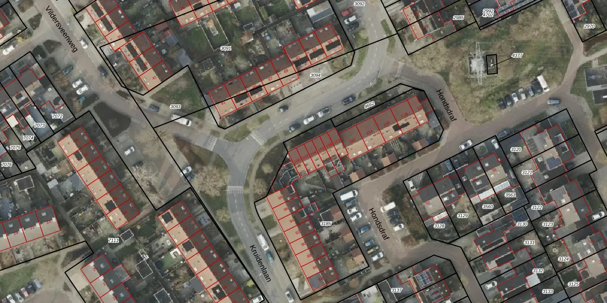 Kruidenlaan 102 is gelegen op kadastraal perceel HLD01B3185. Deze kadastrale aanduiding is uniek en wordt gebruikt door het Kadaster om eigendomsrechten en andere zakelijke rechten vast te leggen. Het perceel maakt onderdeel uit van de kadastrale gemeente Hellendoorn.