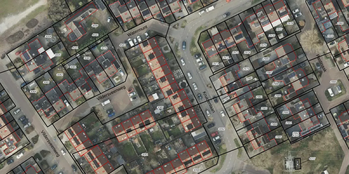 Kruidenlaan 105 is gelegen op kadastraal perceel HLD01B3085. Deze kadastrale aanduiding is uniek en wordt gebruikt door het Kadaster om eigendomsrechten en andere zakelijke rechten vast te leggen. Het perceel maakt onderdeel uit van de kadastrale gemeente Hellendoorn.