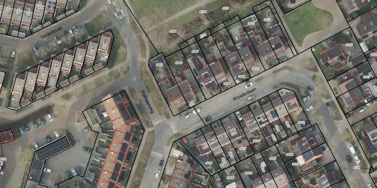 Kruidenlaan 208 is gelegen op kadastraal perceel HLD01B3846. Deze kadastrale aanduiding is uniek en wordt gebruikt door het Kadaster om eigendomsrechten en andere zakelijke rechten vast te leggen. Het perceel maakt onderdeel uit van de kadastrale gemeente Hellendoorn.