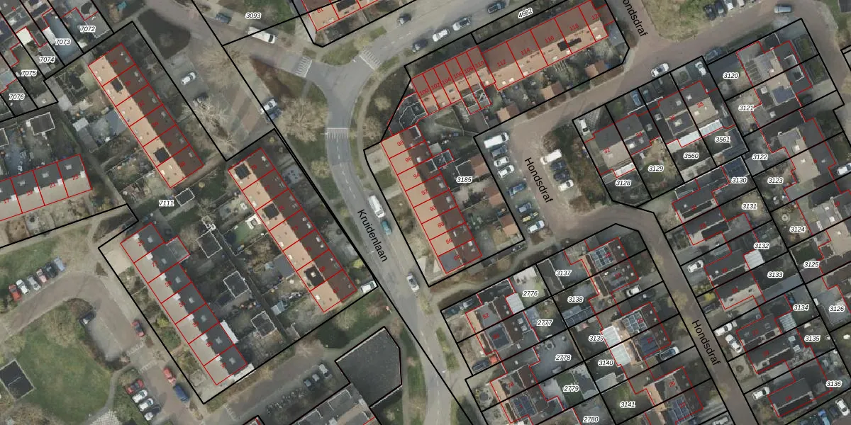 Kruidenlaan 90 is gelegen op kadastraal perceel HLD01B3185. Deze kadastrale aanduiding is uniek en wordt gebruikt door het Kadaster om eigendomsrechten en andere zakelijke rechten vast te leggen. Het perceel maakt onderdeel uit van de kadastrale gemeente Hellendoorn.
