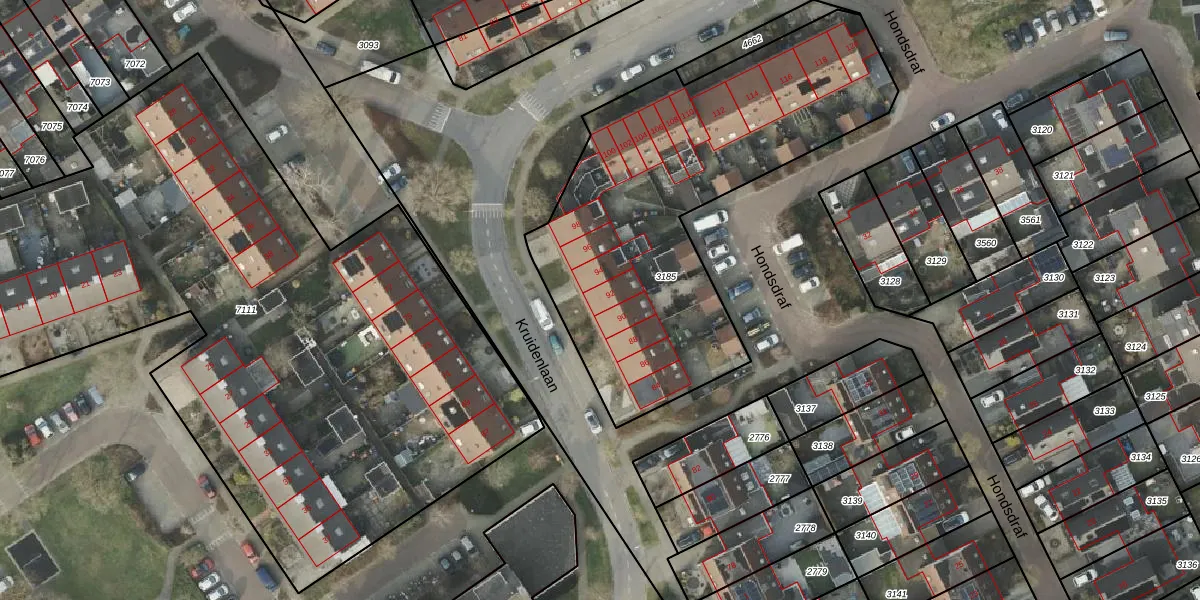 Kruidenlaan 92 is gelegen op kadastraal perceel HLD01B3185. Deze kadastrale aanduiding is uniek en wordt gebruikt door het Kadaster om eigendomsrechten en andere zakelijke rechten vast te leggen. Het perceel maakt onderdeel uit van de kadastrale gemeente Hellendoorn.