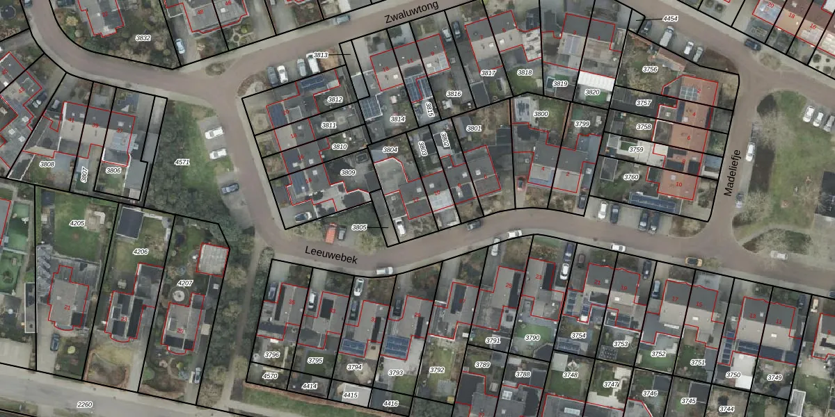 Het perceel waarop Leeuwebek 12 staat heeft een oppervlakte van 243 m². Dit is een middelgroot perceel. De perceeloppervlakte wordt geregistreerd door het Kadaster. Gedetailleerde informatie over de maten van dit perceel kunt u vinden in het rapport Kadastrale kaart met maatvoering van Leeuwebek 12.