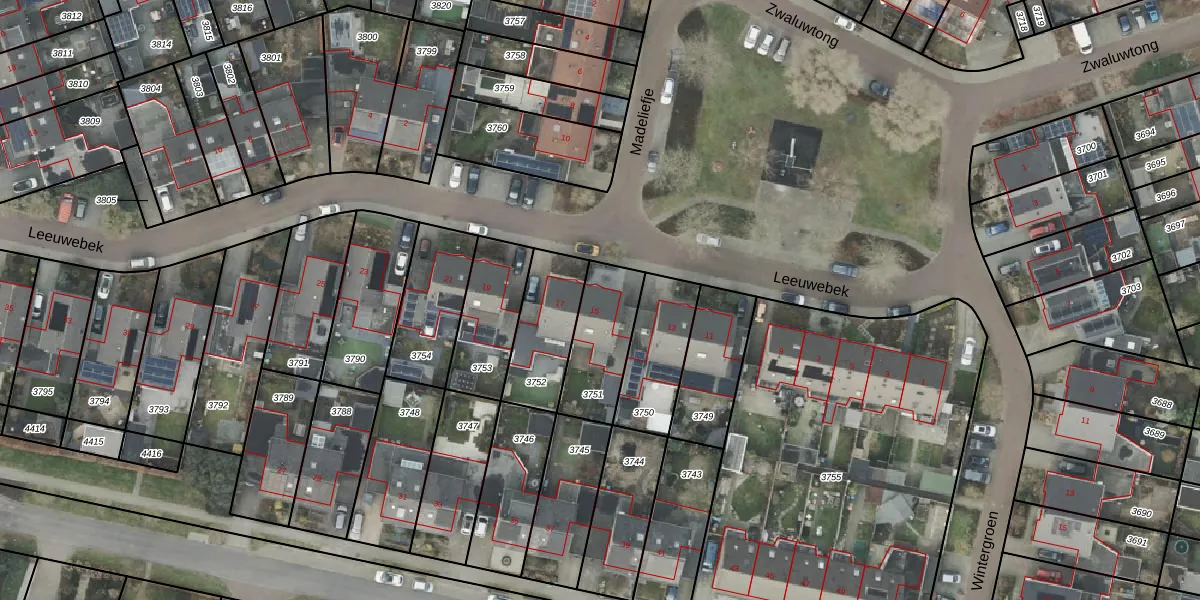 Gebruik de zoekbalk of klik op een perceel voor informatie over de adressen binnen dit perceel.