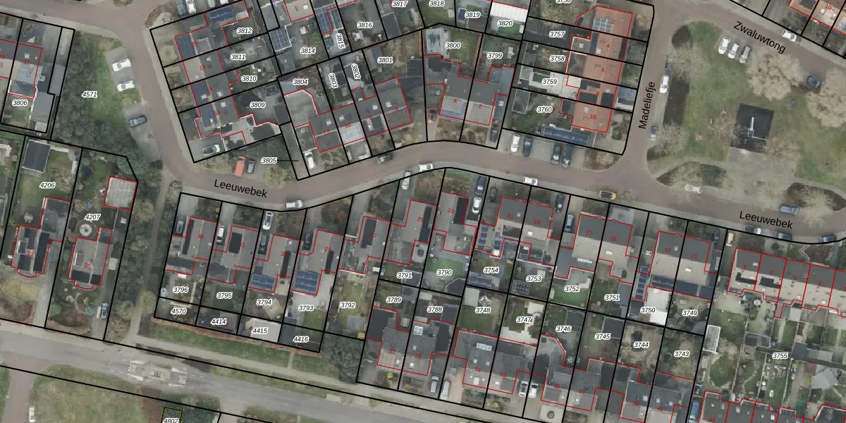 Gebruik de zoekbalk of klik op een perceel voor informatie over de adressen binnen dit perceel.
