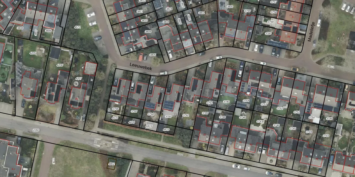 Het perceel waarop Leeuwebek 29 staat heeft een oppervlakte van 304 m². Dit is een groot perceel. De perceeloppervlakte wordt geregistreerd door het Kadaster. Gedetailleerde informatie over de maten van dit perceel kunt u vinden in het rapport Kadastrale kaart met maatvoering van Leeuwebek 29.