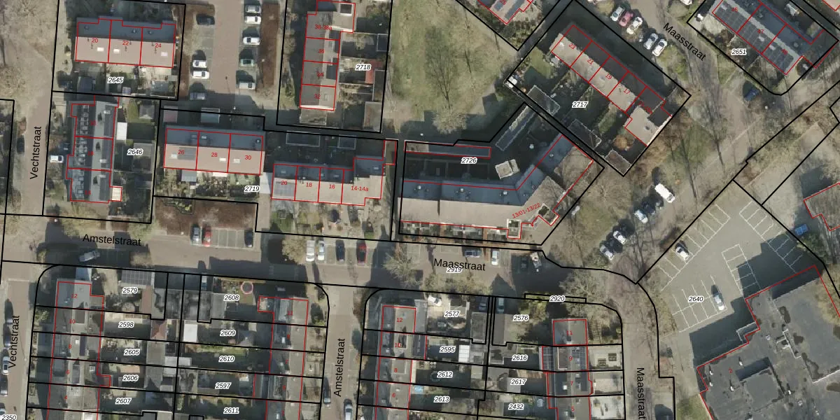 Het perceel waarop Maasstraat 13-05 staat heeft een oppervlakte van 1064 m². Dit is een zeer groot perceel. De perceeloppervlakte wordt geregistreerd door het Kadaster. Gedetailleerde informatie over de maten van dit perceel kunt u vinden in het rapport Kadastrale kaart met maatvoering van Maasstraat 13-05.