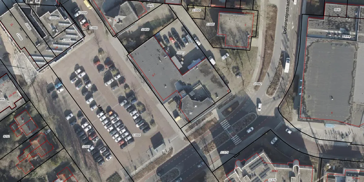 Het perceel waarop Markt 5 staat heeft een oppervlakte van 1750 m². Dit is een zeer groot perceel. De perceeloppervlakte wordt geregistreerd door het Kadaster. Gedetailleerde informatie over de maten van dit perceel kunt u vinden in het rapport Kadastrale kaart met maatvoering van Markt 5.