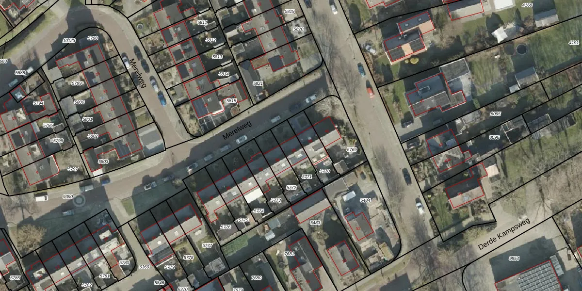 Het perceel waarop Merelweg 36 staat heeft een oppervlakte van 168 m². Dit is een middelgroot perceel. De perceeloppervlakte wordt geregistreerd door het Kadaster. Gedetailleerde informatie over de maten van dit perceel kunt u vinden in het rapport Kadastrale kaart met maatvoering van Merelweg 36.
