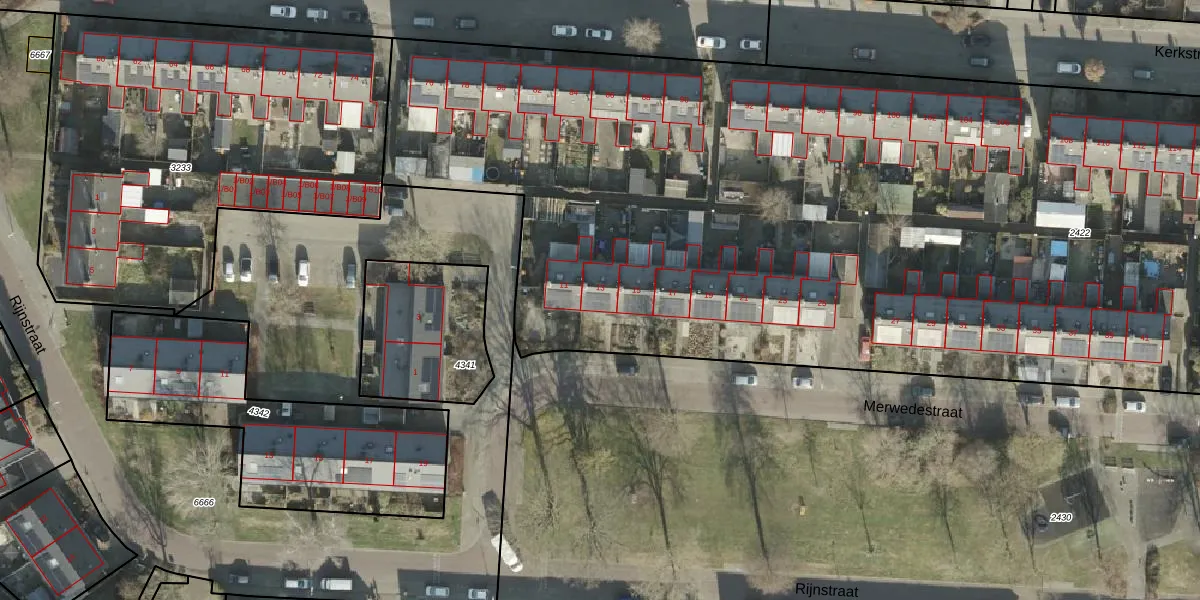Het perceel waarop Merwedestraat 13 staat heeft een oppervlakte van 9330 m². Dit is een zeer groot perceel. De perceeloppervlakte wordt geregistreerd door het Kadaster. Gedetailleerde informatie over de maten van dit perceel kunt u vinden in het rapport Kadastrale kaart met maatvoering van Merwedestraat 13.