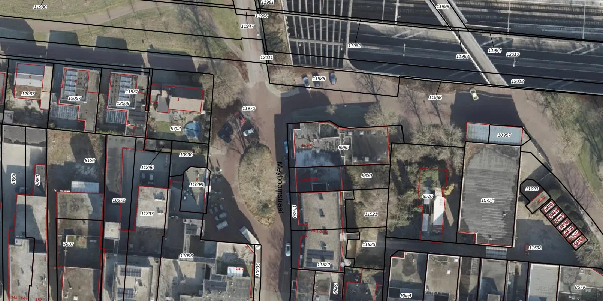 Het perceel waarop Meyboomstraat 10 staat heeft een oppervlakte van 482 m². Dit is een groot perceel. De perceeloppervlakte wordt geregistreerd door het Kadaster. Gedetailleerde informatie over de maten van dit perceel kunt u vinden in het rapport Kadastrale kaart met maatvoering van Meyboomstraat 10.