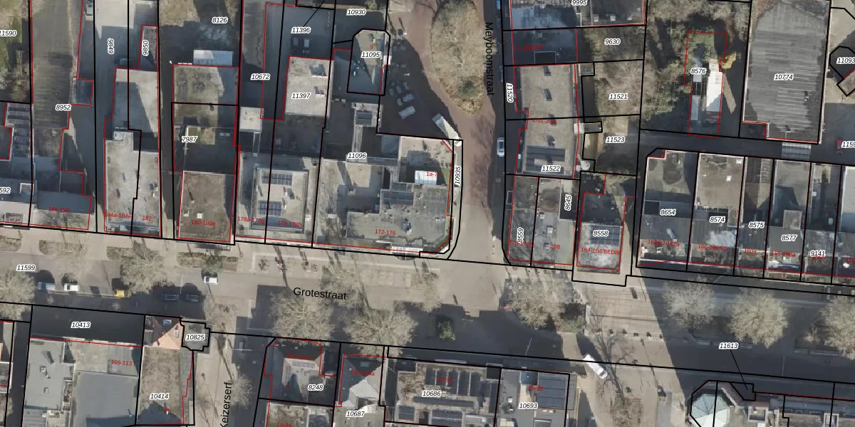 Het perceel waarop Meyboomstraat 5-a staat heeft een oppervlakte van 1029 m². Dit is een zeer groot perceel. De perceeloppervlakte wordt geregistreerd door het Kadaster. Gedetailleerde informatie over de maten van dit perceel kunt u vinden in het rapport Kadastrale kaart met maatvoering van Meyboomstraat 5-a.