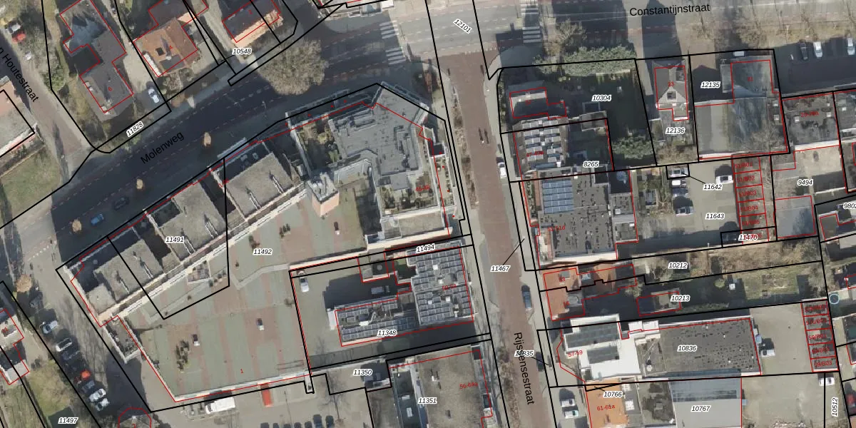 Het perceel waarop Molenweg 1-01 staat heeft een oppervlakte van 3153 m². Dit is een zeer groot perceel. De perceeloppervlakte wordt geregistreerd door het Kadaster. Gedetailleerde informatie over de maten van dit perceel kunt u vinden in het rapport Kadastrale kaart met maatvoering van Molenweg 1-01.
