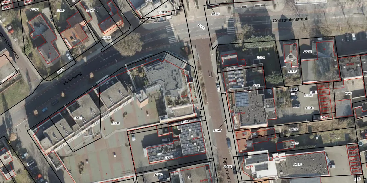 Het perceel waarop Molenweg 1-02 staat heeft een oppervlakte van 3153 m². Dit is een zeer groot perceel. De perceeloppervlakte wordt geregistreerd door het Kadaster. Gedetailleerde informatie over de maten van dit perceel kunt u vinden in het rapport Kadastrale kaart met maatvoering van Molenweg 1-02.