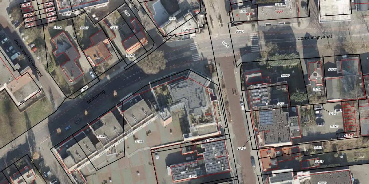 Het perceel waarop Molenweg 3-04 staat heeft een oppervlakte van 3153 m². Dit is een zeer groot perceel. De perceeloppervlakte wordt geregistreerd door het Kadaster. Gedetailleerde informatie over de maten van dit perceel kunt u vinden in het rapport Kadastrale kaart met maatvoering van Molenweg 3-04.