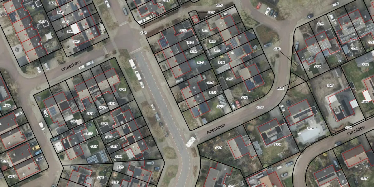 Gebruik de zoekbalk of klik op een perceel voor informatie over de adressen binnen dit perceel.