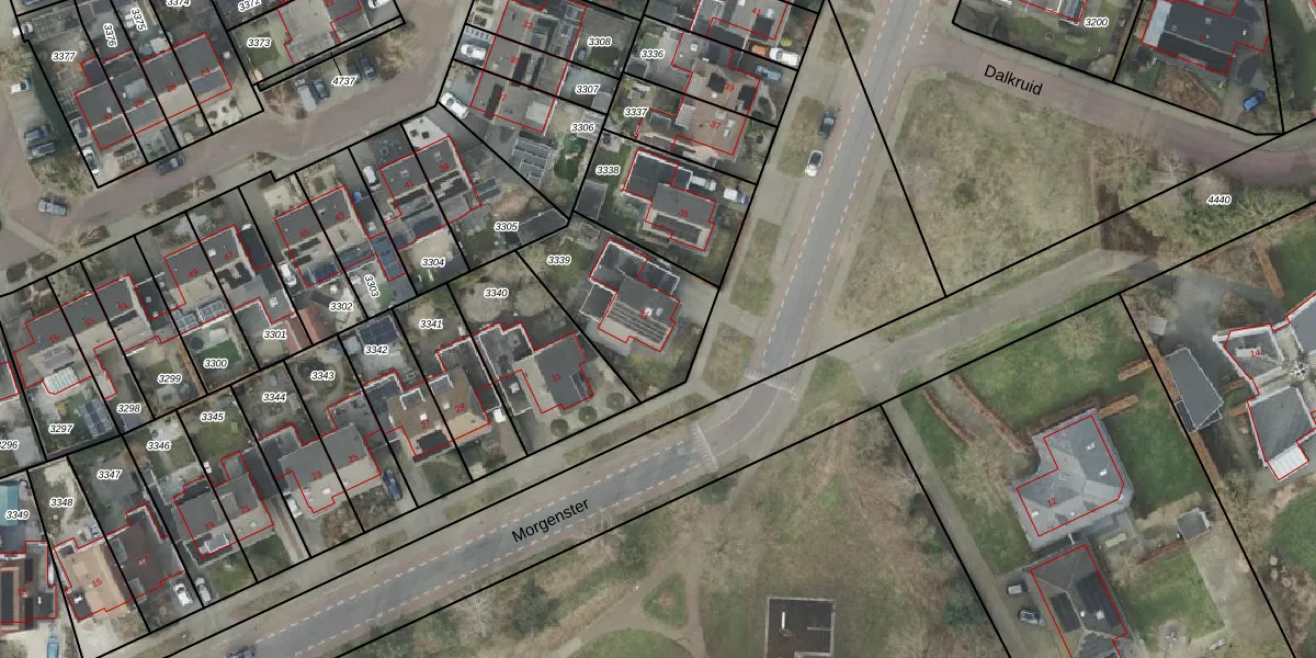 Het perceel waarop Morgenster 33 staat heeft een oppervlakte van 458 m². Dit is een groot perceel. De perceeloppervlakte wordt geregistreerd door het Kadaster. Gedetailleerde informatie over de maten van dit perceel kunt u vinden in het rapport Kadastrale kaart met maatvoering van Morgenster 33.