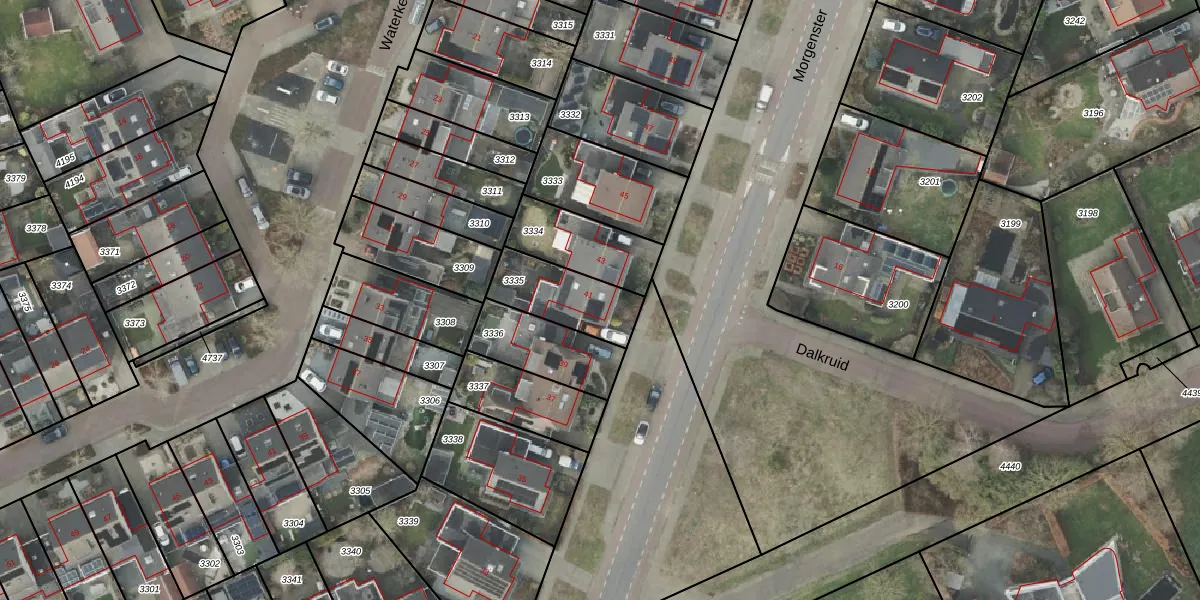 Gebruik de zoekbalk of klik op een perceel voor informatie over de adressen binnen dit perceel.