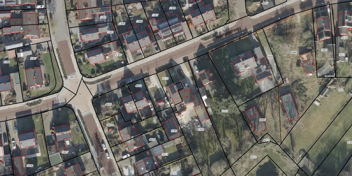 Noetselerweg 61 is gelegen op kadastraal perceel HLD01L5172. Deze kadastrale aanduiding is uniek en wordt gebruikt door het Kadaster om eigendomsrechten en andere zakelijke rechten vast te leggen. Het perceel maakt onderdeel uit van de kadastrale gemeente Hellendoorn.