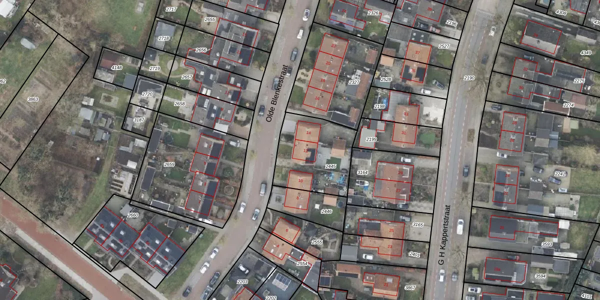 Het perceel waarop Olde Blenkestraat 12 staat heeft een oppervlakte van 588 m². Dit is een groot perceel. De perceeloppervlakte wordt geregistreerd door het Kadaster. Gedetailleerde informatie over de maten van dit perceel kunt u vinden in het rapport Kadastrale kaart met maatvoering van Olde Blenkestraat 12.