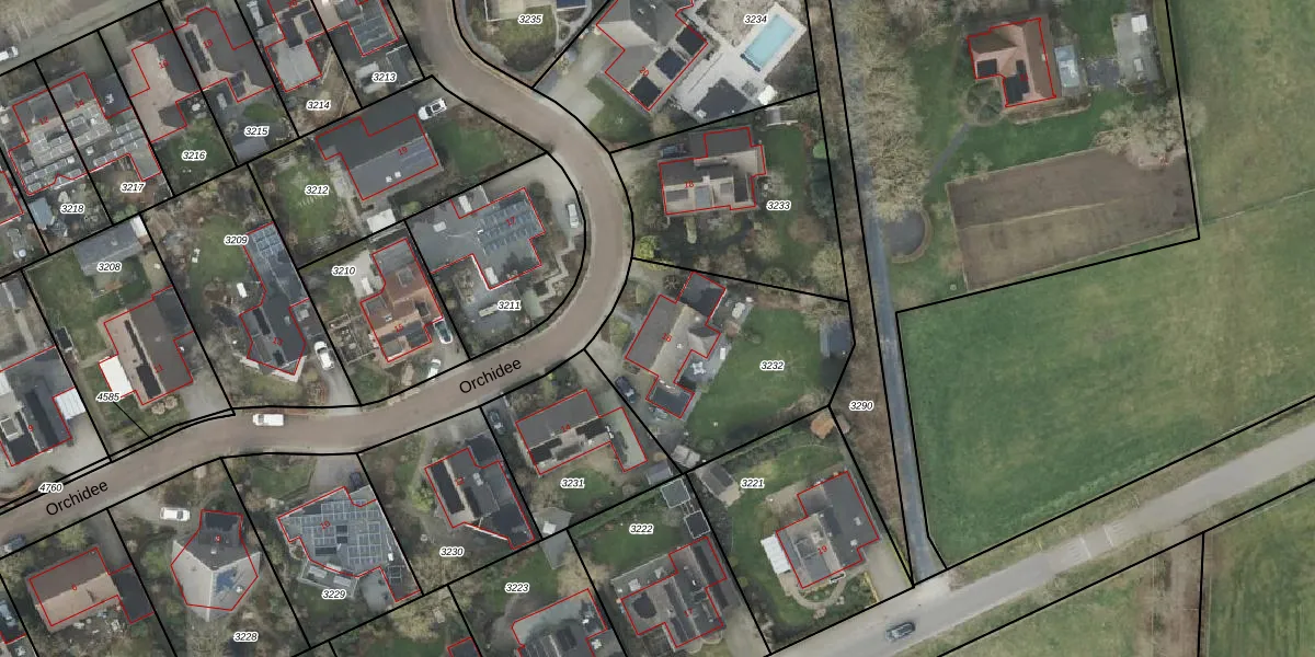 Het perceel waarop Orchidee 16 staat heeft een oppervlakte van 856 m². Dit is een groot perceel. De perceeloppervlakte wordt geregistreerd door het Kadaster. Gedetailleerde informatie over de maten van dit perceel kunt u vinden in het rapport Kadastrale kaart met maatvoering van Orchidee 16.