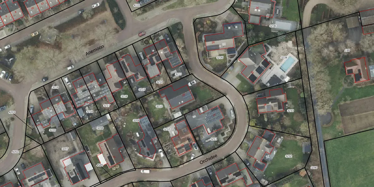 Het perceel waarop Orchidee 19 staat heeft een oppervlakte van 654 m². Dit is een groot perceel. De perceeloppervlakte wordt geregistreerd door het Kadaster. Gedetailleerde informatie over de maten van dit perceel kunt u vinden in het rapport Kadastrale kaart met maatvoering van Orchidee 19.