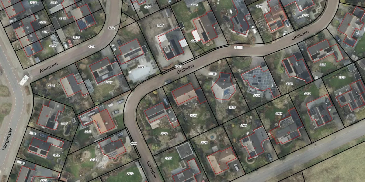 Het perceel waarop Orchidee 6 staat heeft een oppervlakte van 618 m². Dit is een groot perceel. De perceeloppervlakte wordt geregistreerd door het Kadaster. Gedetailleerde informatie over de maten van dit perceel kunt u vinden in het rapport Kadastrale kaart met maatvoering van Orchidee 6.