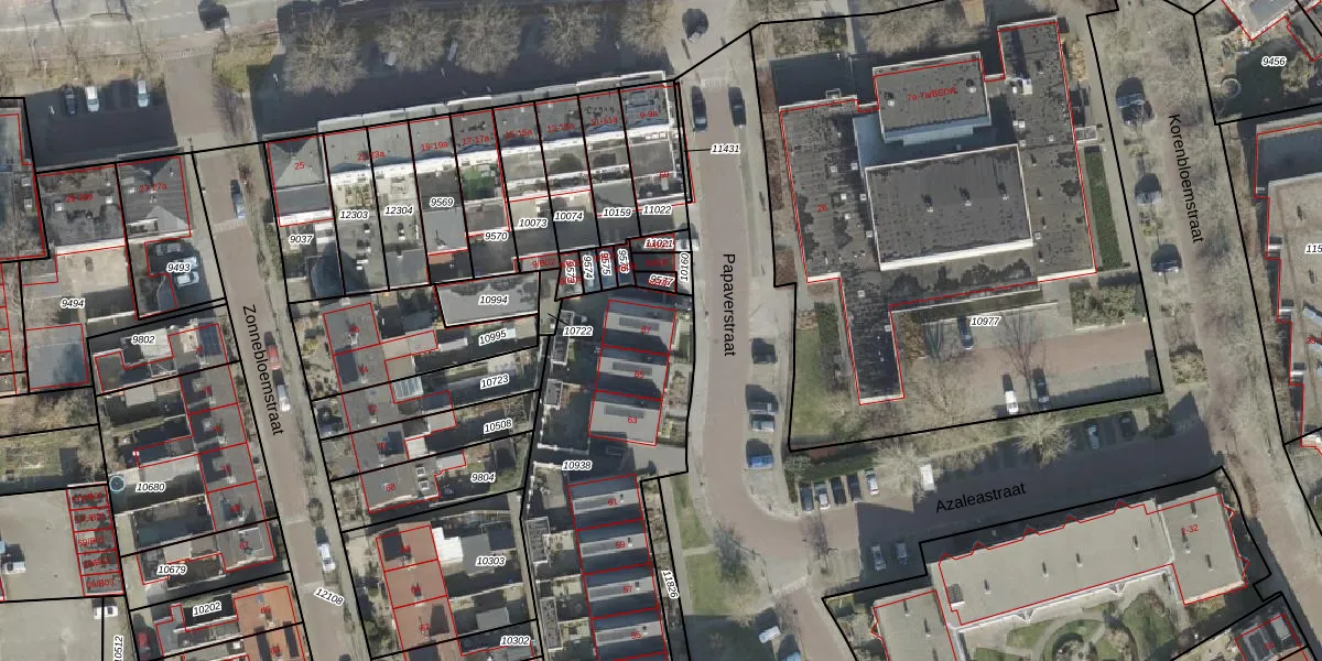 Het perceel waarop Papaverstraat 67 staat heeft een oppervlakte van 1327 m². Dit is een zeer groot perceel. De perceeloppervlakte wordt geregistreerd door het Kadaster. Gedetailleerde informatie over de maten van dit perceel kunt u vinden in het rapport Kadastrale kaart met maatvoering van Papaverstraat 67.