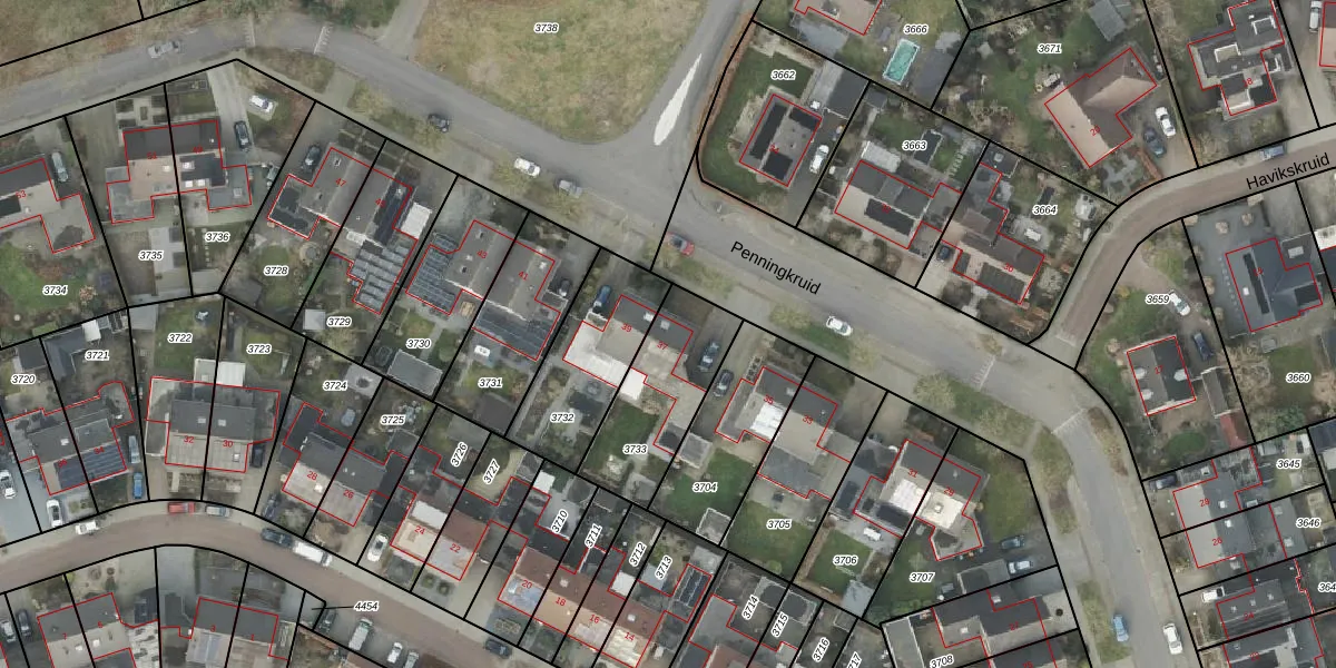 Het perceel waarop Penningkruid 37 staat heeft een oppervlakte van 384 m². Dit is een groot perceel. De perceeloppervlakte wordt geregistreerd door het Kadaster. Gedetailleerde informatie over de maten van dit perceel kunt u vinden in het rapport Kadastrale kaart met maatvoering van Penningkruid 37.