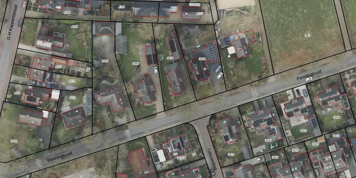Het perceel waarop Penningkruid 60 staat heeft een oppervlakte van 751 m². Dit is een groot perceel. De perceeloppervlakte wordt geregistreerd door het Kadaster. Gedetailleerde informatie over de maten van dit perceel kunt u vinden in het rapport Kadastrale kaart met maatvoering van Penningkruid 60.
