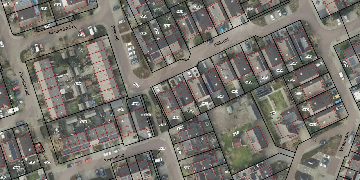 Het perceel waarop Pijlkruid 17 staat heeft een oppervlakte van 230 m². Dit is een middelgroot perceel. De perceeloppervlakte wordt geregistreerd door het Kadaster. Gedetailleerde informatie over de maten van dit perceel kunt u vinden in het rapport Kadastrale kaart met maatvoering van Pijlkruid 17.