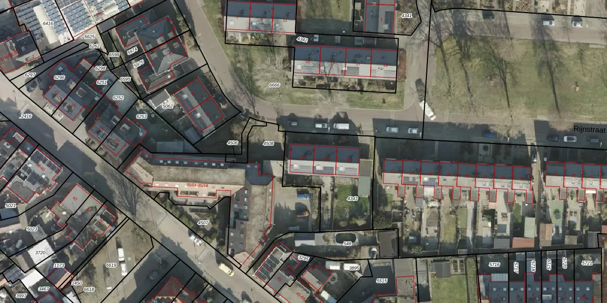 Rijnstraat 16 is gelegen op kadastraal perceel HLD01L4343. Deze kadastrale aanduiding is uniek en wordt gebruikt door het Kadaster om eigendomsrechten en andere zakelijke rechten vast te leggen. Het perceel maakt onderdeel uit van de kadastrale gemeente Hellendoorn.