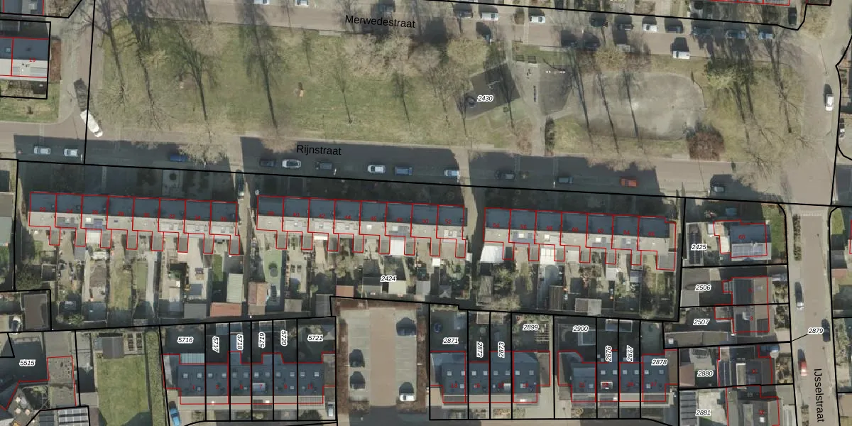 Het perceel waarop Rijnstraat 50 staat heeft een oppervlakte van 4950 m². Dit is een zeer groot perceel. De perceeloppervlakte wordt geregistreerd door het Kadaster. Gedetailleerde informatie over de maten van dit perceel kunt u vinden in het rapport Kadastrale kaart met maatvoering van Rijnstraat 50.