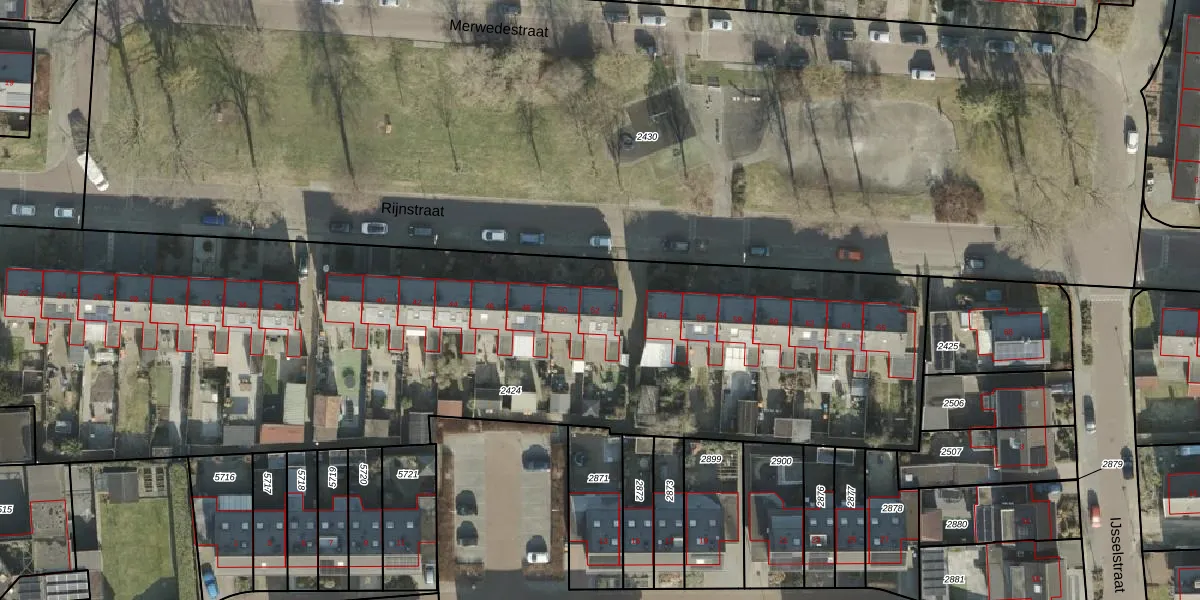 Het perceel waarop Rijnstraat 52 staat heeft een oppervlakte van 4950 m². Dit is een zeer groot perceel. De perceeloppervlakte wordt geregistreerd door het Kadaster. Gedetailleerde informatie over de maten van dit perceel kunt u vinden in het rapport Kadastrale kaart met maatvoering van Rijnstraat 52.