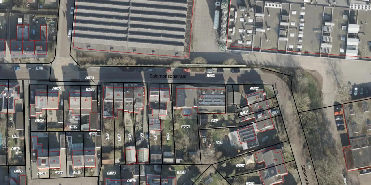 Het perceel waarop Salomonsonstraat 21 staat heeft een oppervlakte van 844 m². Dit is een groot perceel. De perceeloppervlakte wordt geregistreerd door het Kadaster. Gedetailleerde informatie over de maten van dit perceel kunt u vinden in het rapport Kadastrale kaart met maatvoering van Salomonsonstraat 21.